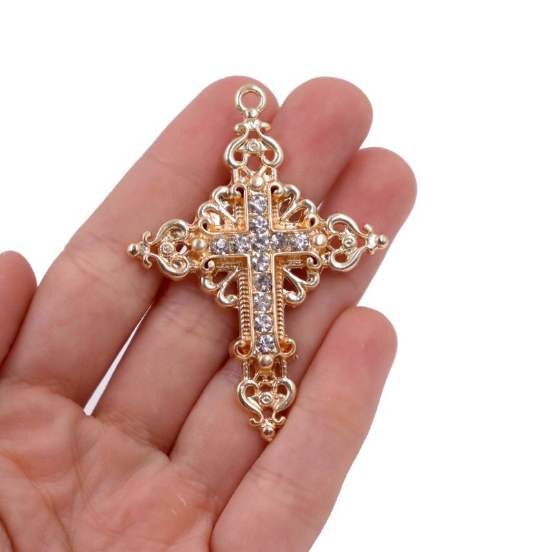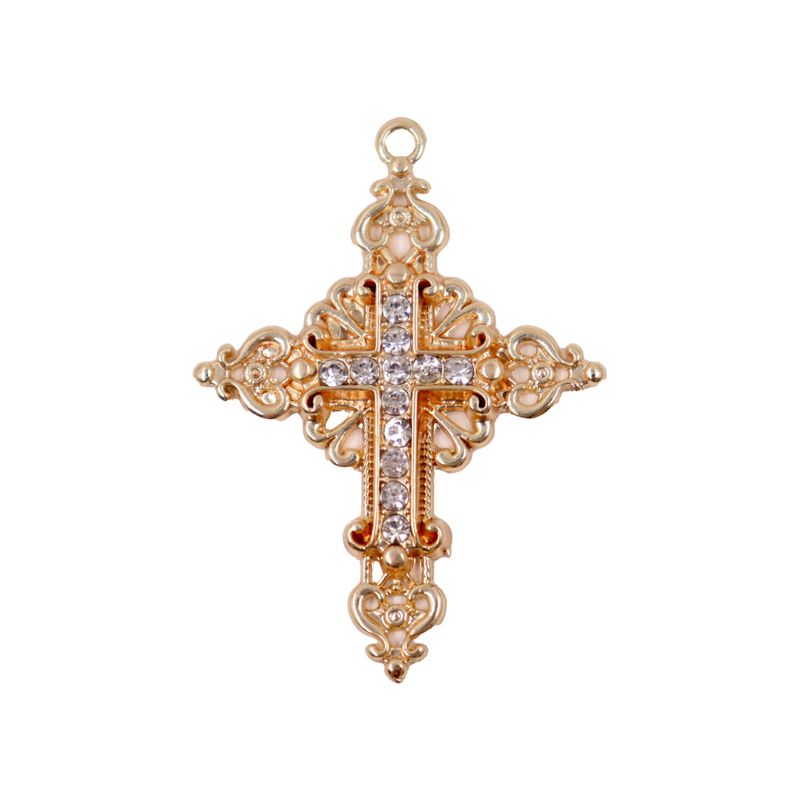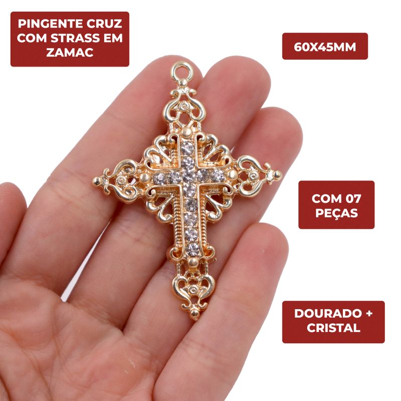 Produzido em zamac, o pingente cruz com strass é ideal para colares religiosos.