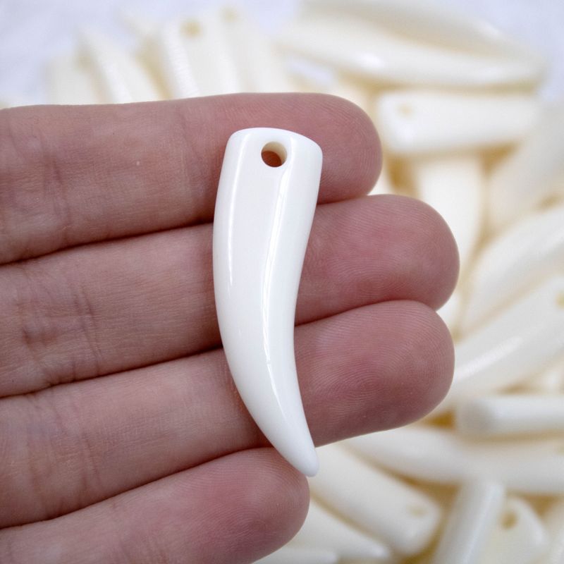 Produzido em resina, o pingente dente de sabre é ideal para confecção e customização em laços, tiaras, bolsas, lembrancinhas, decorações e artesanatos em geral