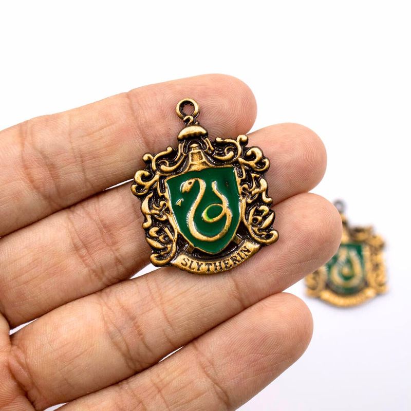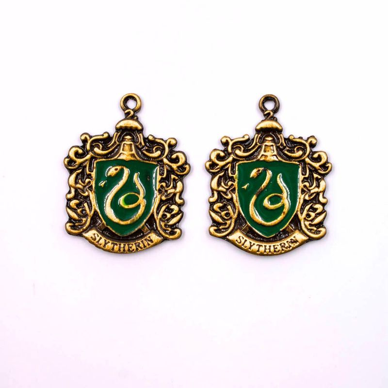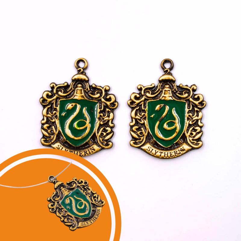 Produzido em Zamac, o pingente Sonserina inspirado nas casas de Hogwarts do universo de Harry Potter, celebra a astúcia, ambição e determinação característicos dessa casa lendária. Com um design fiel ao original, o pingente retrata os detalhes distintivos da casa de Sonserina, incluindo sua cobra símbolo e suas cores verde e prata, sendo ideal para confecção de bijuterias como pulseiras, colares, chaveiros e artesanatos em geral.