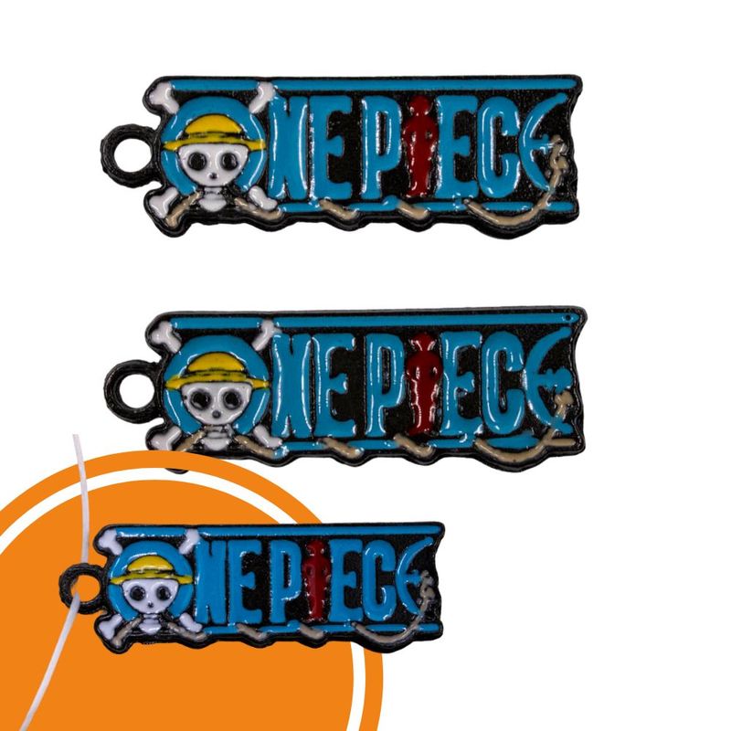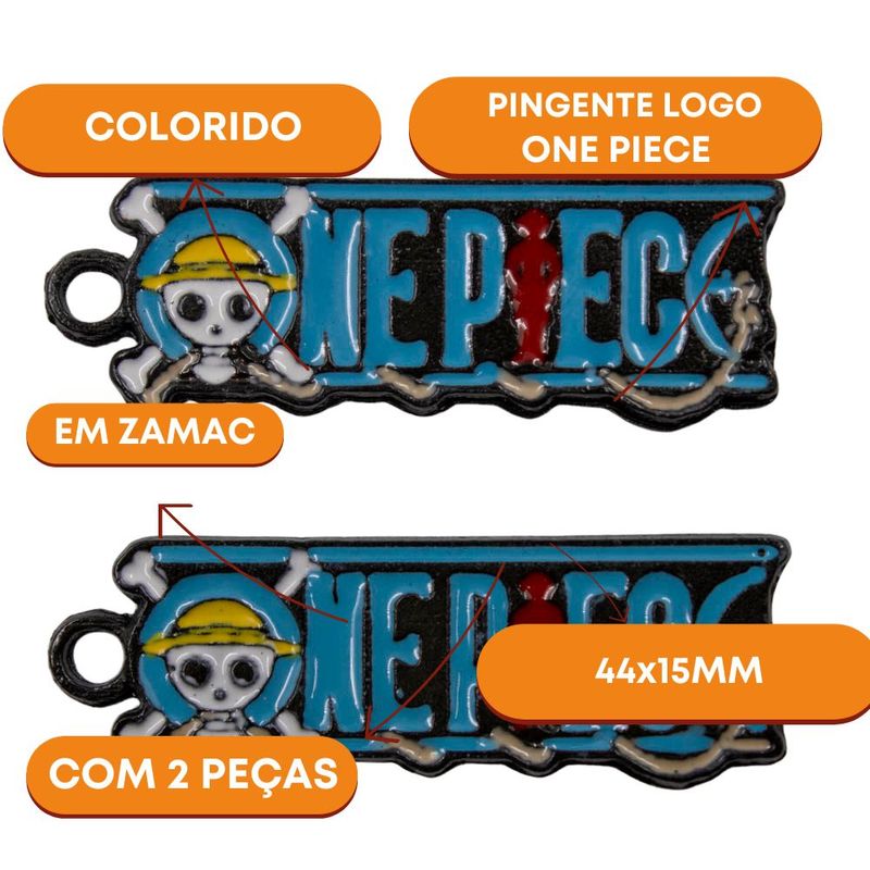 Produzido em Zamac, o pingente logotipo de One Piece é reconhecido instantaneamente pelos fãs, apresentando o nome da série em uma fonte distintiva acompanhada da Jolly Roger com Chapéu de Palha. Com o pingente é possível criar chaveiros, pulseiras, colares e artesanatos em geral, sendo uma maneira de carregar consigo os sentimentos e memórias associados ao mundo vibrante e personagens memoráveis que tornaram One Piece uma parte tão querida da cultura pop.