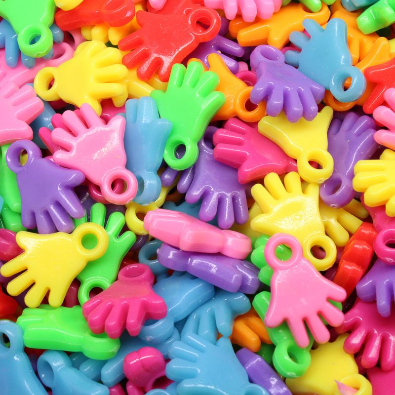 Produzido em plástico, o pingente maozinha é ideal para confecção e customização em bijuterias, chaveiros, lembrancinhas, decorações e artesanatos em geral