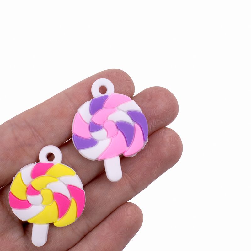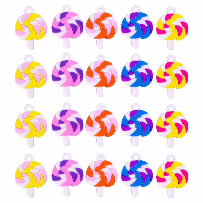 Pingente emborrachado em formato de pirulitos, perfeito para dar um toque divertido e colorido a chaveiros, pulseiras, lembrancinhas e projetos de artesanato. Seu design fofo e vibrante garante destaque em qualquer aplicação criativa.