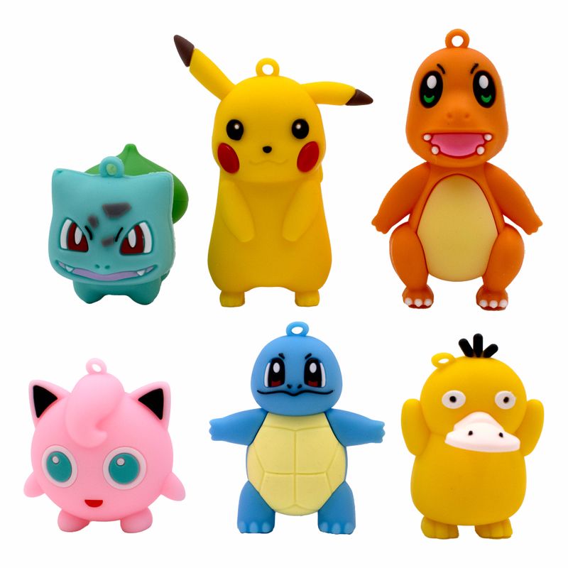 Tamanho: Pikachu: 62MM | Bulbasauro: 50MM | Psyduck: 60MM | Charmander: 70MM | Jigglypuff: 53MM | Squirtle 63MM