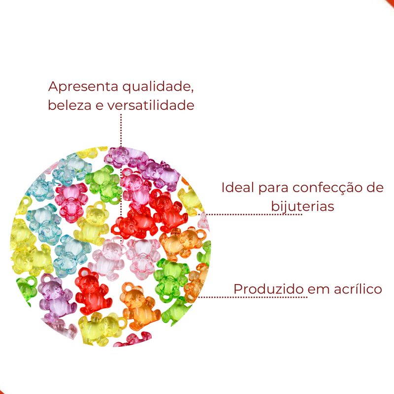 Produzido em plástico, o pingente ursinho é ideal para confecção de bijuterias, chaveiros, lembrancinhas e muito mais. O pacote contém todas as letras do alfabeto.