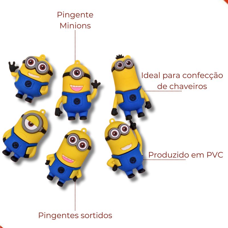 Produzido em PVC, os pingentes Minions são ideais para confecção e customização em bolsas, lembrancinhas, chaveiros, decorações e artesanatos em geral.