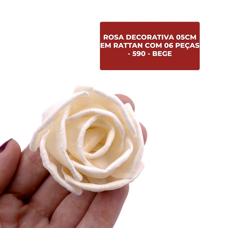 Rosa Decorativa 05Cm Em Rattan Com 06 Peças